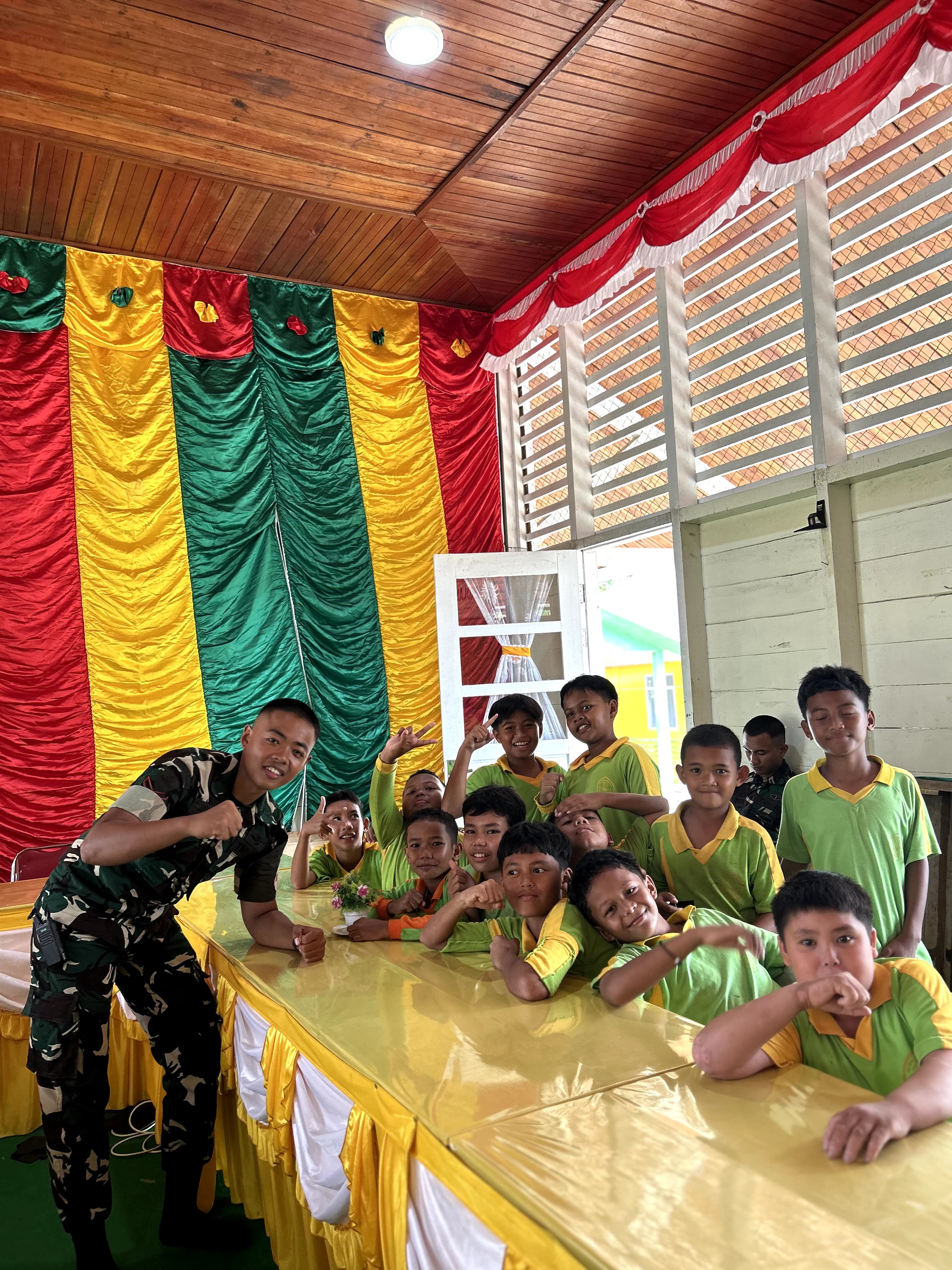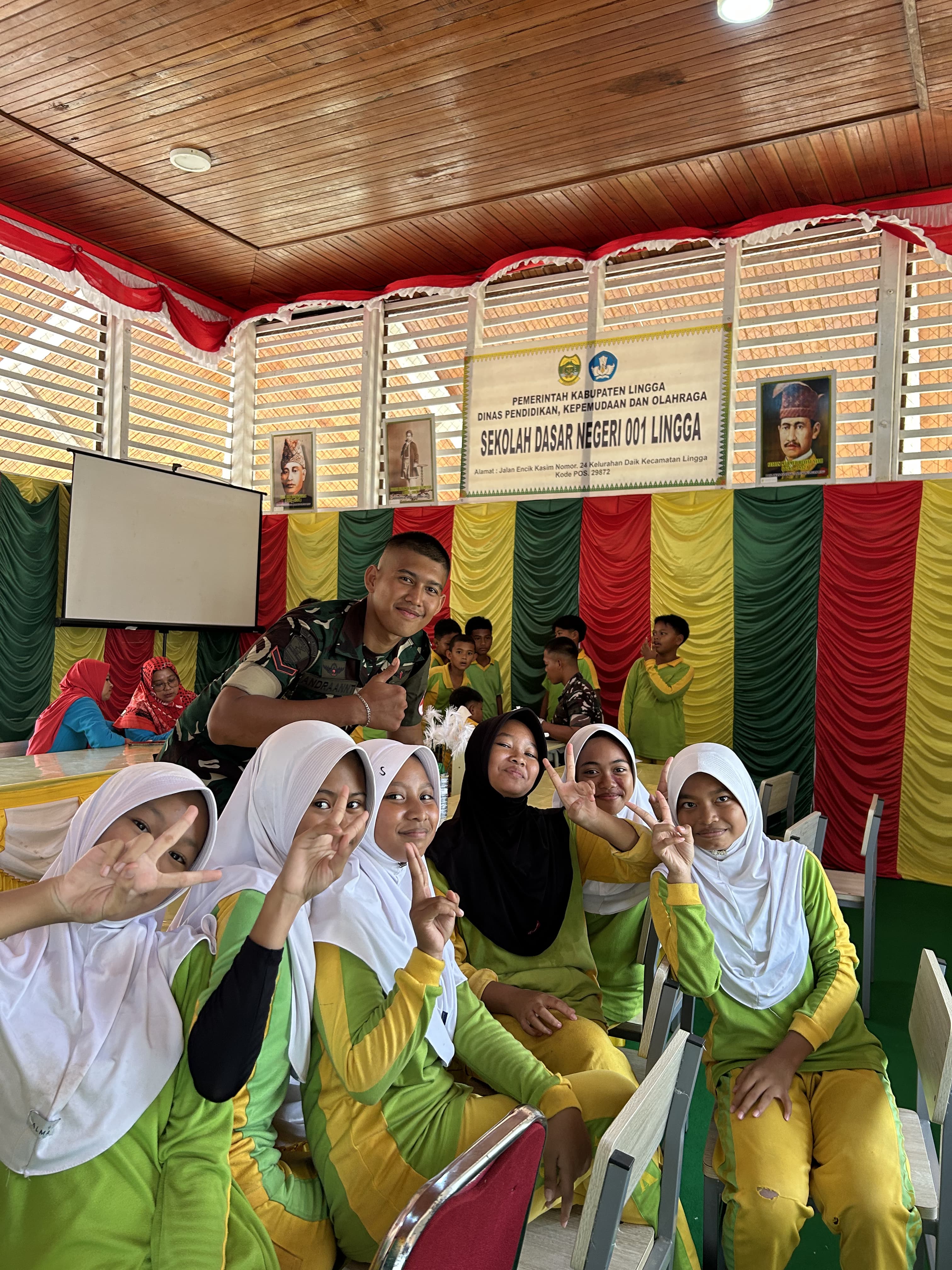 Dipimpin oleh Dantonkes Yonif TP 849/Beladau Sakti, Letda Ckm Mohammad Rizal Diansya, S.Kep., Ns., tim prajurit kesehatan yang berjumlah lima orang turut hadir dan berkontribusi dalam pelaksanaan kegiatan yang digelar di Lapangan Hang Tuah, Daik, Lingga serta SDN 1 Daik.